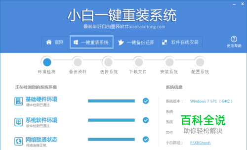 软件自动检测电脑软硬件环境以及电脑网络连通状态,完成后点击下一步按钮。