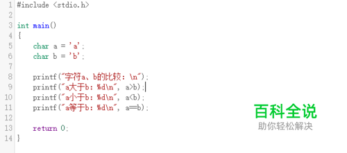 C语言中字符是使用char来定义的,使用关系运算符(>,<,=)即可对字符进行比较。