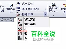 例如,我们要将这个矩形逆时针旋转30度。参考点为左下角点。 首先,我们点击移动实体下拉箭头,点击旋转实体按钮。