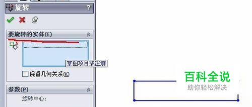 我们看到左边出现设置对话框,我们选择好要旋转的图形,选择旋转参考点,输入角度值为30度,点击勾确定,旋转的图形就得到了。
