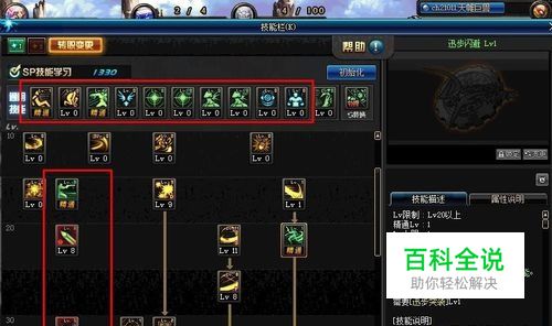 技能加点:在一觉与二觉之前,建议玩家学习的技能则是对应图片中 的红色标示。相对来说,这几个技能比较更容易清理怪。之后玩家在一觉与二觉的时候,则学习对应的技能即可。而其他的技能不建议浪费技能点学习。