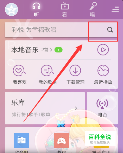 首先打开手机酷狗音乐这款软件,然后在首页点击上方的搜索栏,如下图所示。