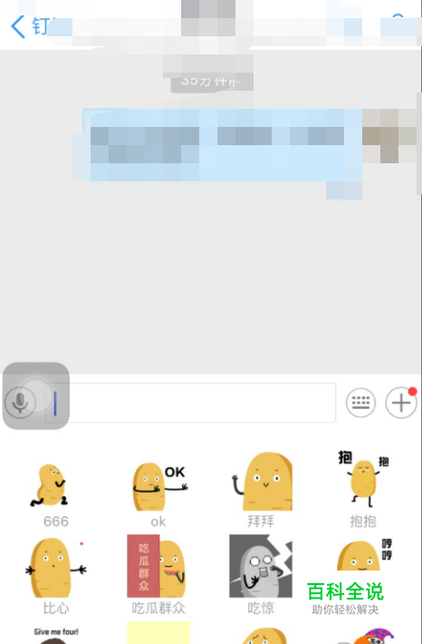 任意打开一个联系人对话框,以土豆表情包为例,开始操作,点击商铺小图标。