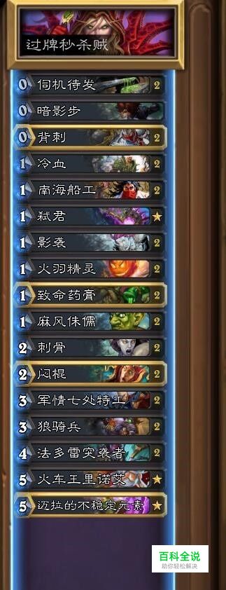 过牌秒杀贼! 这套牌最大的亮点就是这张盗贼橙法,抽空你的手牌。这是一套典型的快攻,前期留手低费随从法术,还有法多雷卫士埋进去6张蜘蛛,尽可能压对面的血线,然后伺机待发橙法,抽光牌库出6只蜘蛛,满手的伤害牌,直接把对面带走。 强度:4星。娱乐度:2星。