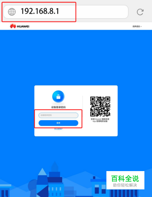 步骤二:在手机浏览器地址栏中输入 192.168.8.1登录 Web 管理界面。输入管理页面的登录密码进入管理页面。