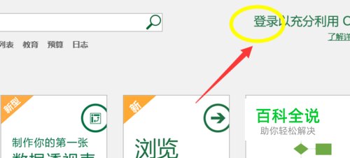 打开Excel之后我们这里会到达它的首页面,在首页我们看到右上角会有一个登陆以充分利用office的一个信息提示,我们可以点击登陆两个字跳转到登陆页面。