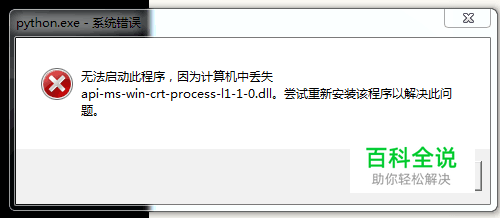运行Python3.7.0时同样出现“无法启动程序,因为计算机中丢失api-ms-win-crt-process-l1-1-0.dll....”的提示。