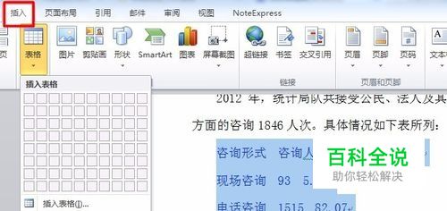 找到“插入”里面的表格,打开下拉菜单,选择“ 文本转换成表格”