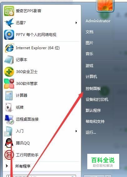 2、点击“开始”,然后点“控制面板”