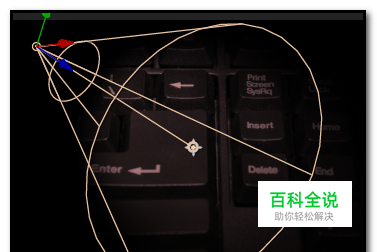 图片上显示有XYZ三个轴向的箭头,我们点住箭头,可以调节灯的位置; 鼠标点三个轴向中间相交的那个点,然后,左右拖,可以缩小,扩大灯光的光罩范围。