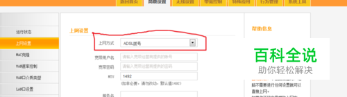 上网方式 设置为“adsl拨号”