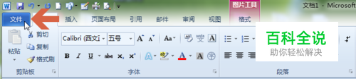 如果不想默认设置成嵌入型。可点击word2010的“文件”菜单。