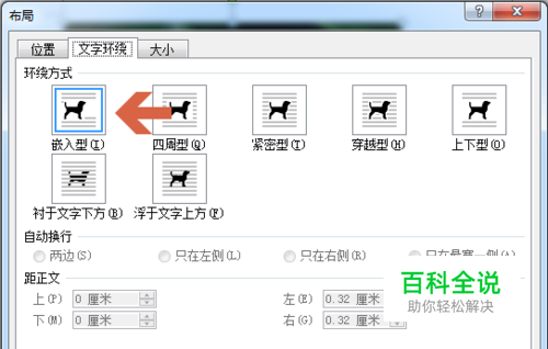 在弹出菜单中点选一个其他想要默认设置的文字环绕方式。