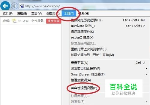 进入网银界面,单击浏览器菜单栏的“工具”,然后选择“兼容性视图设置(B)”。