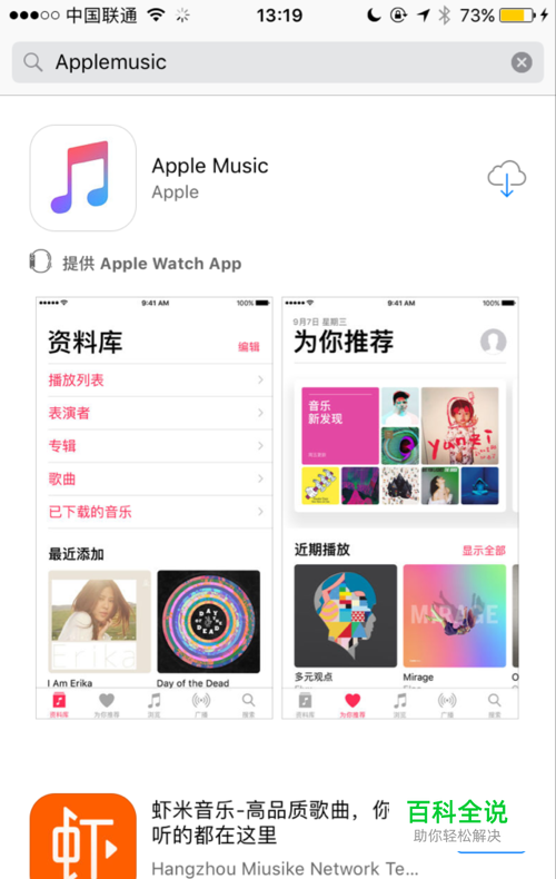 打开apple手机里面的app store,搜索apple music并下载到自己的手机