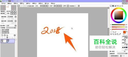 如使用sai中,怎样去调一个图像和图层的透明度,为了示范,先用画笔,在画布上画上一个图形,默认画出来的是没有透明度的,如下图所示。