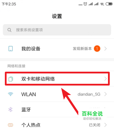 进入到小米设置列表中,我们选择页面的“双卡和移动网络”的选项进入。