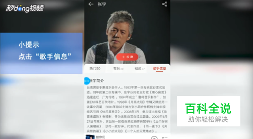在弹出的界面中点击“歌手信息”图标,在打开的界面中即可显示歌手信息。
