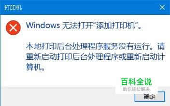 在Windows10系统添加打印机的时候,提示“无法打开添加打印机”窗口。
