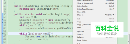 右键编写区域,选择'debug as'-->'java application'进入debug模式(备注:如果我们是第一次打开debug模式会有一个设置的弹出框,我们不用管它,直接next最后点击确定就可以)
