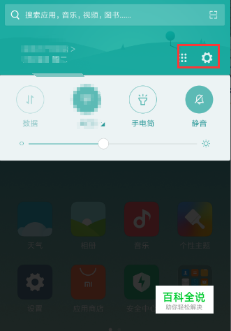 首先,我们下滑手机屏幕最上端,使得手机的默认设置界面弹出。然后点击齿轮,进入到手机的设置界面中