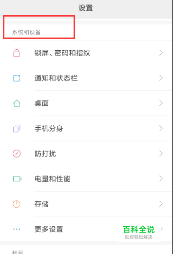 我们向下滑动手机的设置界面,直到“系统和设备”的设置部分,