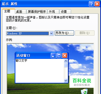 打开“显示属性”对话框,并定位在“主题”选项卡: