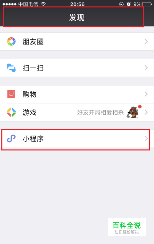 进入微信首页,点击发现界面中的小程序。