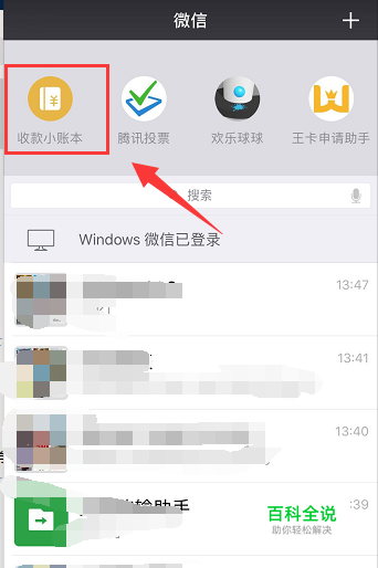 上方 出现小程序,选择收款小账本,没有的自己可以添加,如下图所示