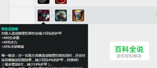 核心装备——黑色切割者(黑切) 黑切是皇子的核心装备,黑切可以弥补皇子的肉装属性,于此同时黑切的叠加伤害破甲被动是皇子所需要的。