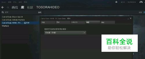 首先打开steam,右键cod14客户端,选择属性,将语言选为日语,因为日语中有大量的汉字词,我们从字面容易理解。