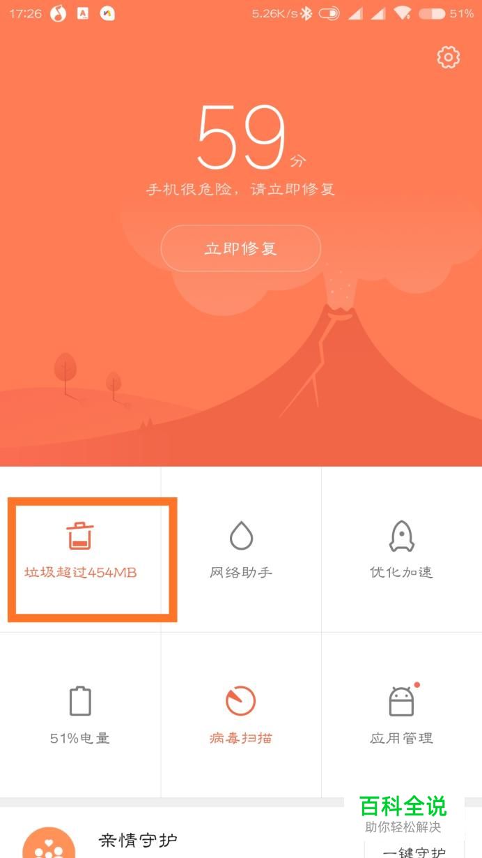 首先打开手机的安全管家或者手机管家,点击垃圾清理。