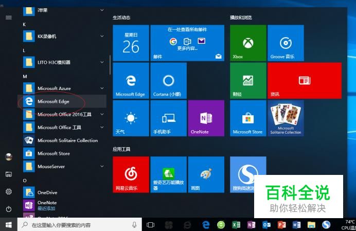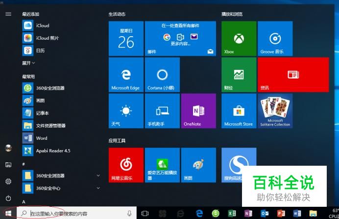 启动Windows 10操作系统,如图所示。点击任务栏"开始"按钮,用于弹出开始菜单。