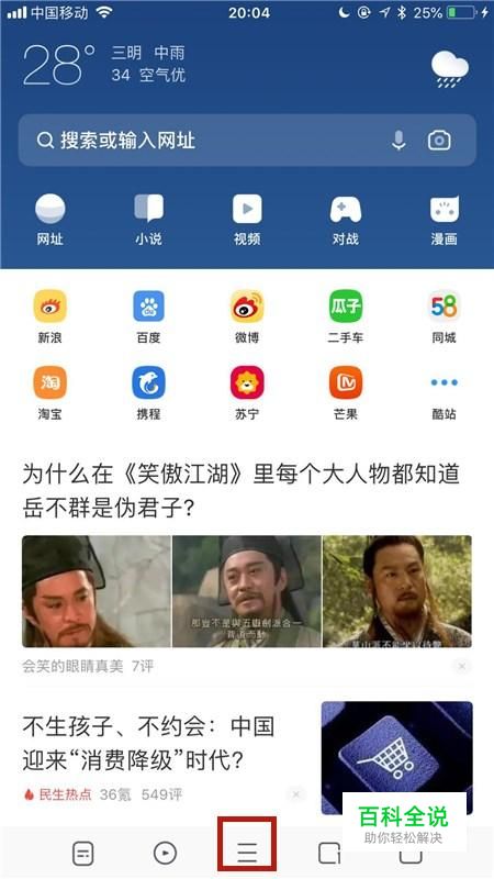然后点击屏幕下方的三条横杆,如下图所示。