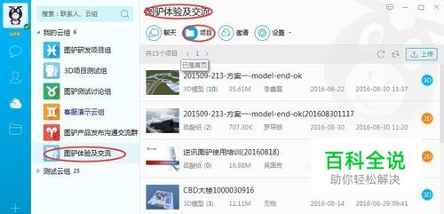 选择想要沟通的工作云组,然后左键双击。在弹出来的页面中,选择并点击项目(红圈标注)
