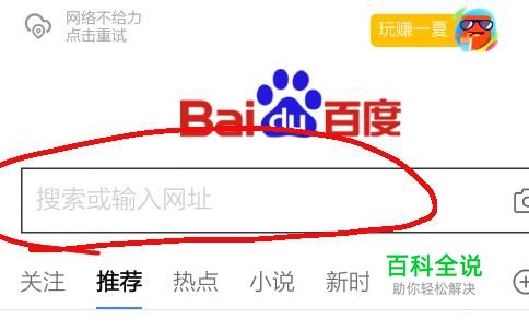 进入百度之后,点击百度首页上方的搜索框,进入搜索页面