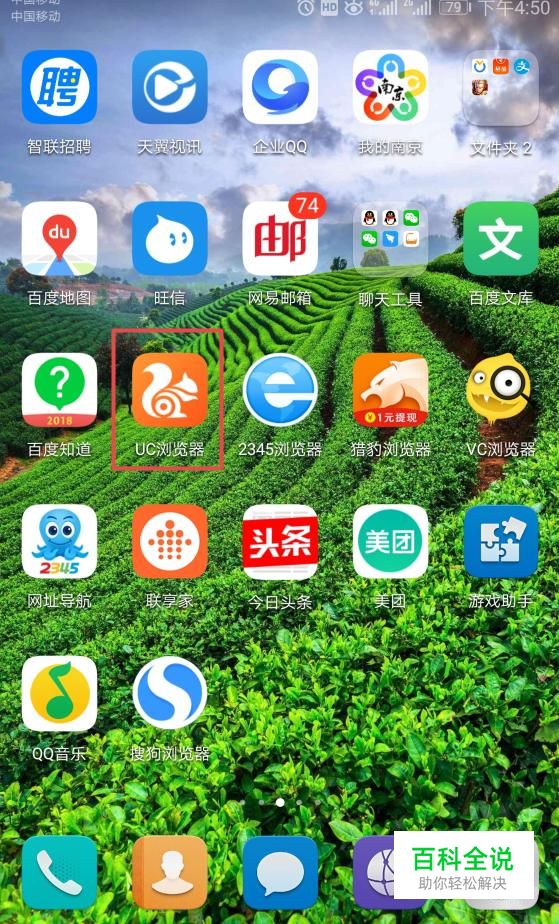 首先,我们打开我们的手机,然后我们点击手机上面的UC浏览器;