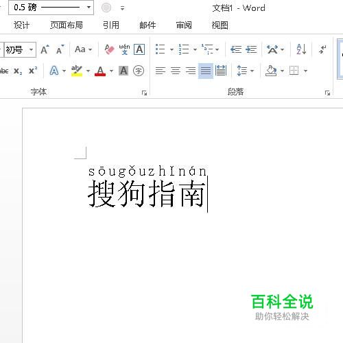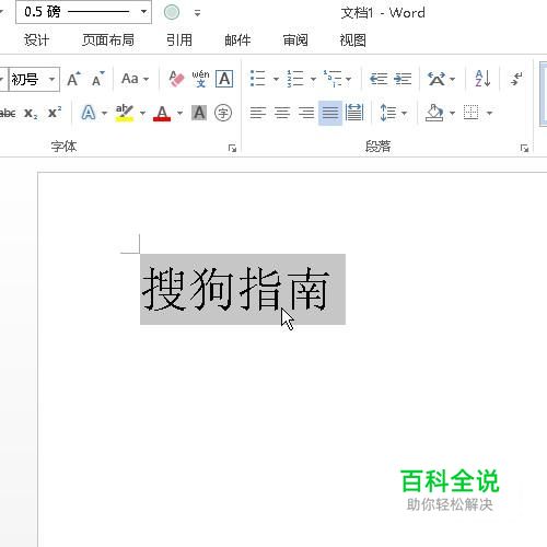 在文档中输入一行文字,比如,输入:搜狗指南;接着,再把“搜狗指南”全选中