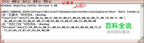 Windows Registry Editor Version 5.00 [HKEY_CURRENT_USER\Software\Microsoft\Windows\CurrentVersion\Explorer\User Shell Folders] ;将“收藏夹”转移到D:\Backup "Favorites"=hex(2):44,00,3a,00,5c,00,42,00,61,00,63,00,6b,00,75,00,70,00,5c,00,\ 46,00,61,00,76,00,6f,00,72,00,69,00,74,00,65,00,73,00,00,00 ;将“我的文档”转移到D:\Backup "Personal"=hex(2):44,00,3a,00,5c,00,42,00,61,00,63,00,6b,00,75,00,70,00,5c,00,\ 11,62,84,76,87,65,63,68,00,00