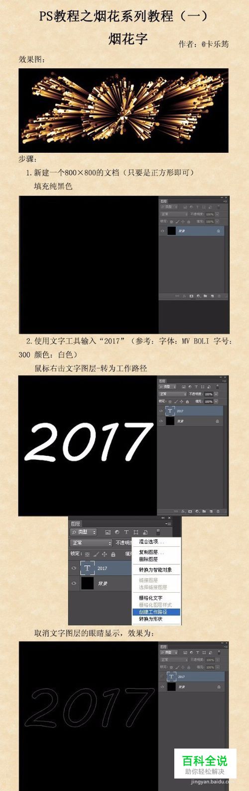 打开ps,新建一个800*800的文档,填充纯黑色。输入文字 比如2017,当让这些内容我们都可以随便输。详情看下图