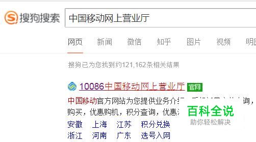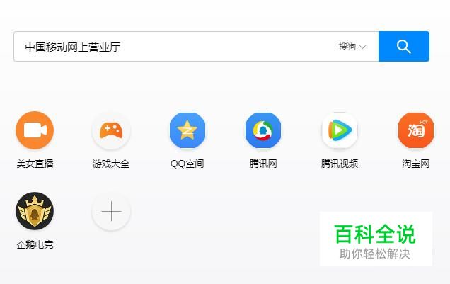 首先,在搜狗浏览器中输入中国移动网上营业厅并点击右侧的搜索按钮,如下图所示。