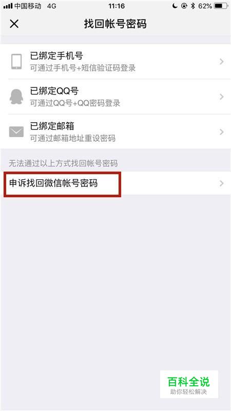 接着点击申诉找回微信账号密码,如下图所示。