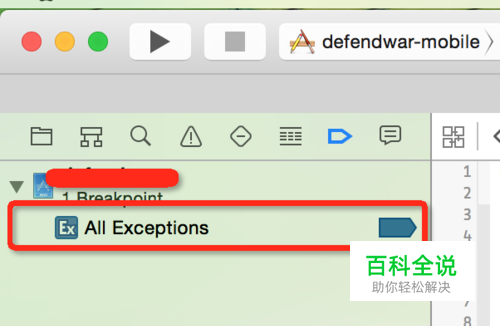 我们可以在“断点导航”界面中看到多了一项“All Exceptions”。 然后我们重新运行程序