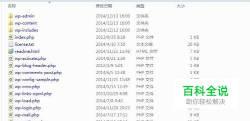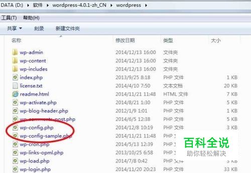 在你解压缩的WordPress文件夹中,找到wp-config-sample.php文件,重命名为wp-config.php(这里我们不用去管配置里面的数据库信息,因为我们并没有);