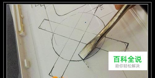 将石头放于后盖背面,四颗定位铁片的位置放在后盖正中,把充电电路板线圈焊掉,将线圈放在定位铁片正中,用铅笔做好记号,将电路板有电子元件的部分下方与后盖上摄像头金属罩下方对齐,并与之保持有0.5mm的距离用铅笔做好记号
