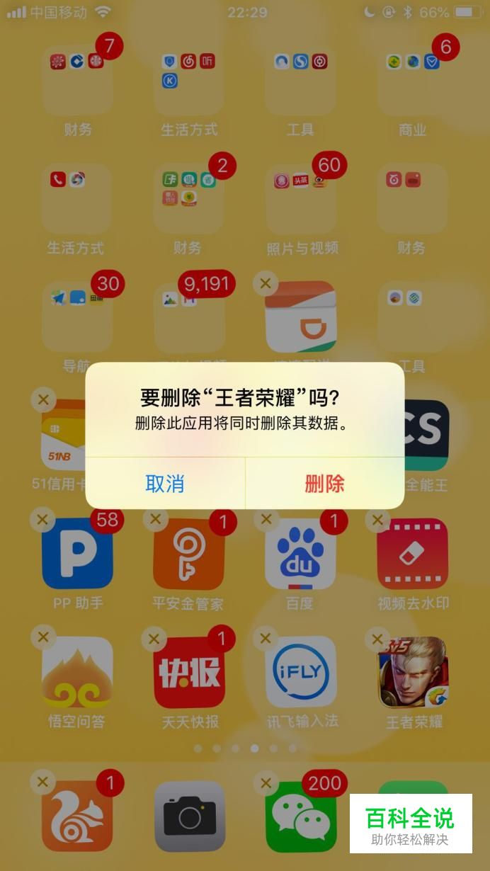 首先将我们首先将我们手机桌面中的王者荣耀删除,如下图所示。