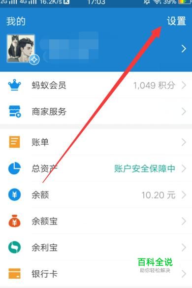 进入之后,点击“设置”,进入下一页面,如图所示。