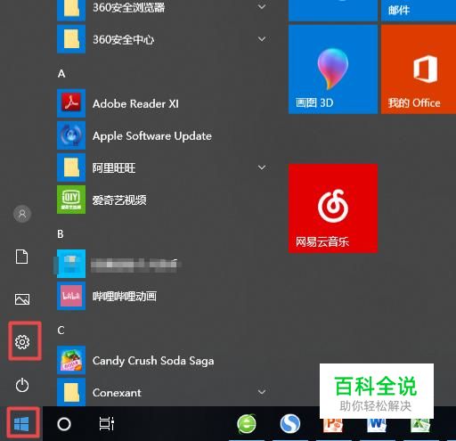 首先,我们点击电脑桌面左下角的微软按钮,弹出的界面,我们点击设置;
