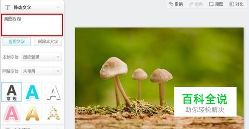 在左侧文本框输入文字之后,点击“应用文字”按钮,文字就添加到图片上了。