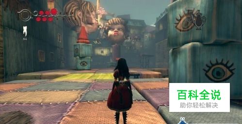跳跃一段平台,同时要利用娃娃耳朵的入口来到小花园内,爱丽斯直接进入娃娃的身体通道。在房间内有一只大娃娃和两个多头怪,爱丽斯可以先消灭二层的两个多头怪。打开机关后登上积木楼梯,在二层爱丽斯进行音乐测试。大门打开后爱丽斯上到平台再次搬动娃娃头机关开始控制娃娃头。